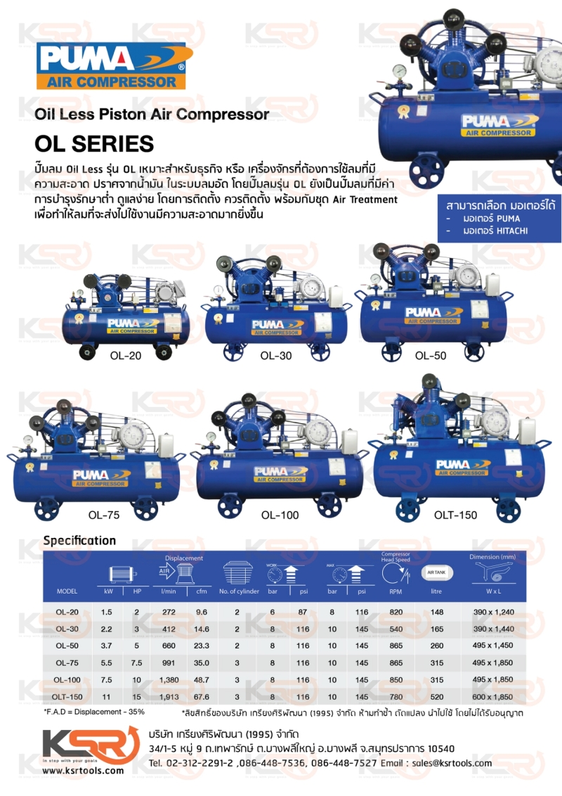 • ปั๊มลมไร้น้ำมันชนิดลูกสูบ เหมาะสำหรับใช้ในด้านอุตสาหกรรมอาหารและยา ที่ต้องการลมที่สะอาดปราศจากการปนเปื้อนของน้ำมัน