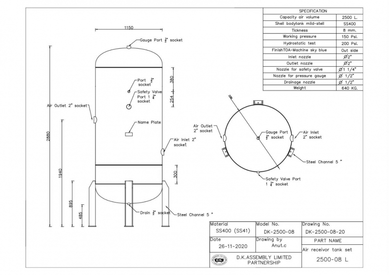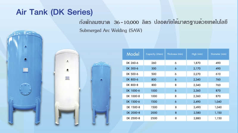 ถังพักลมผลิตด้วยเทคโนโลยี Submerged Arc Welding (SAW) ซึ่งมีความปลอดภัยและแข็งแรงทนทานต่อการใช้งาน