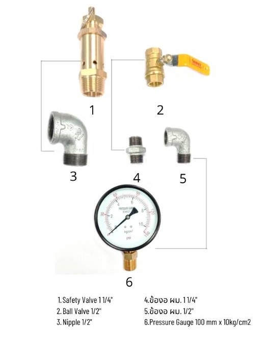 – พร้อมอุปกรณ์ (เพรสเชอร์เกจ์ , บอลวาล์ว , เซฟตี้วาล์ว)