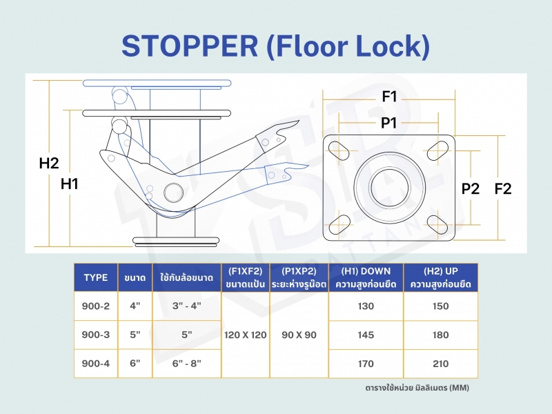 Stopper หรือตัวล็อคล้อ (Caster Stopper) เป็นอุปกรณ์เสริมที่ใช้สำหรับ ล็อคล้ออุตสาหกรรมให้หยุดนิ่ง ป้องกันการเคลื่อนที่โดยไม่ตั้งใจ เหมาะกับงานที่ต้องการความมั่นคงและความปลอดภัย เช่น โต๊ะเครื่องจักร รถเข็นอุตสาหกรรม แท่นวางอุปกรณ์ และงานประกอบทั่วไป